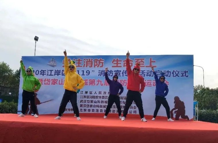 隨后,江岸區(qū)消防救援大隊帶來開場大合唱《生命至上》、《沒有共產(chǎn)黨就沒有新中國》、岱家山科創(chuàng)城消安員們帶來消防舞蹈《一塊做消防》,歌頌著大家對生命、對祖國以及對消防事業(yè)的熱愛。江岸區(qū)應急管理局局長陳超宣讀了《江岸區(qū)消防安全委員會關于表彰百名優(yōu)秀消防志愿者的決定》,江岸區(qū)人民政府常務副區(qū)長祁琳致辭并宣布2020年江岸區(qū)119消防宣傳月活動啟動儀式暨岱家山科創(chuàng)城第九屆消防趣味運動會比賽開始。
